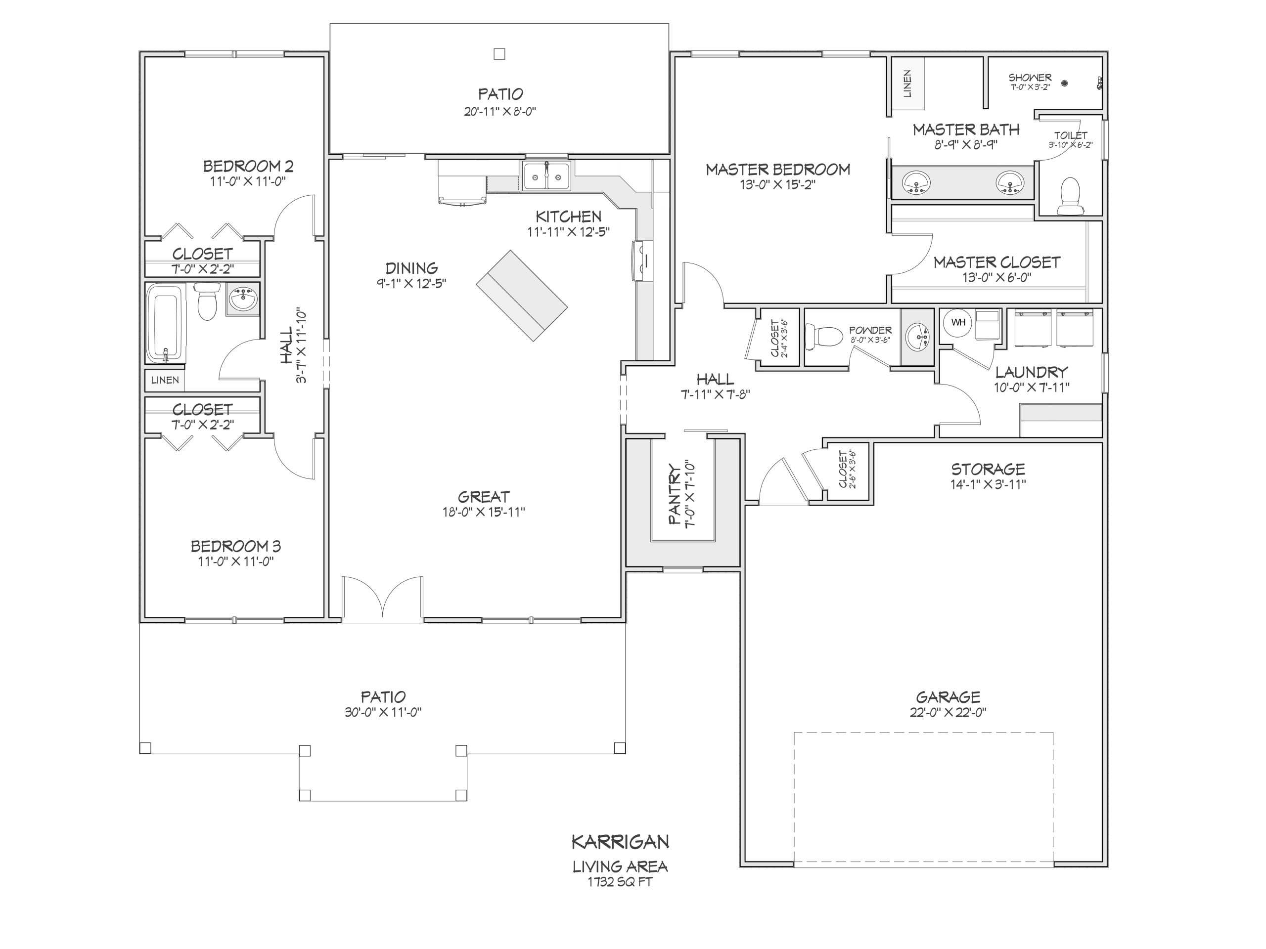 With an modern open floor plan that measures 1,728 under-air square feet, this three-bedroom and two ½-bathroom home is the perfect gem that allows any family to sit with our in-house designer and have upgradeable options available to make this home design unique for them. When choosing this design, this home may be built on any vacant lot of the homeowner’s choice that’s buildable.