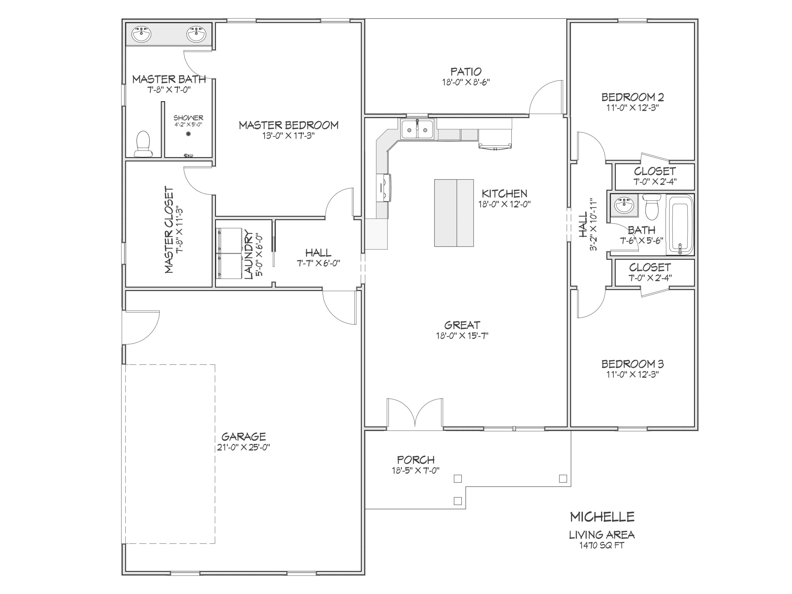 An attractive home that is 1,388 under air square feet; a single-family home with the makings of the perfect starter home for any family becoming a first-time homeowner. This home showcases three bedrooms, two bathrooms, and a 2 Car Garage that when choosing this design, this home may be built on any vacant lot of the homeowner’s choice that’s buildable.